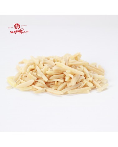 Sucesores de Ignacio López procesa la almendra repelada en varios formatos para su uso industrial en panadería, repostería, confitería y chocolatería. Además de nuestras almendras molidas, fileteadas y granuladas, disponibles en envases de 500 gramos y un kilo, estas almendras crudas cortadas en bastones, sin conservantes ni colorantes, ofrecen un sinfín de posibilidades para la elaboración y el adorno de todo tipo de platos y postres, tanto dulces como salados. Este ingrediente es ideal para adornar dulces y tartas o como cobertura para otro tipo de postres, como galletas u hojaldres. Además, al igual que las almendras granuladas, estos bastones también sirven para enriquecer salsas o acompañar pollo y pescado. Al horno, son una buena alternativa para crear sabrosas costras de almendra.